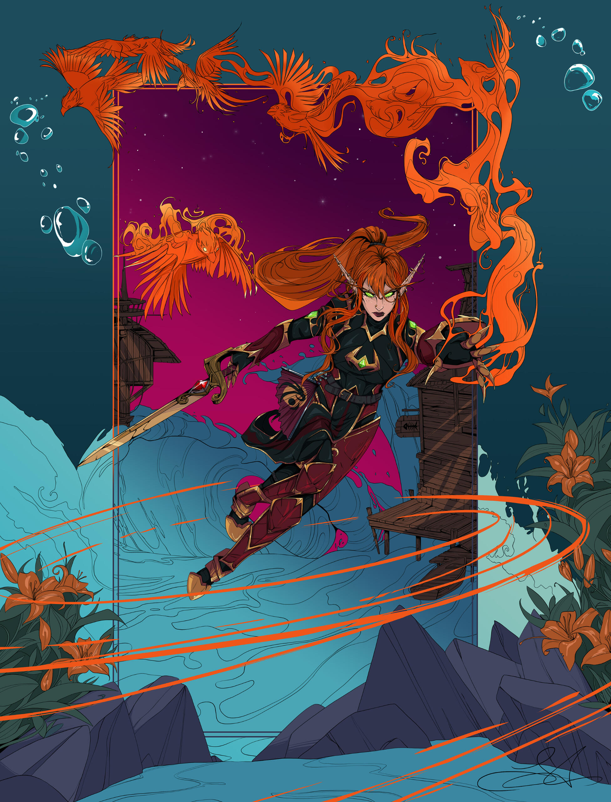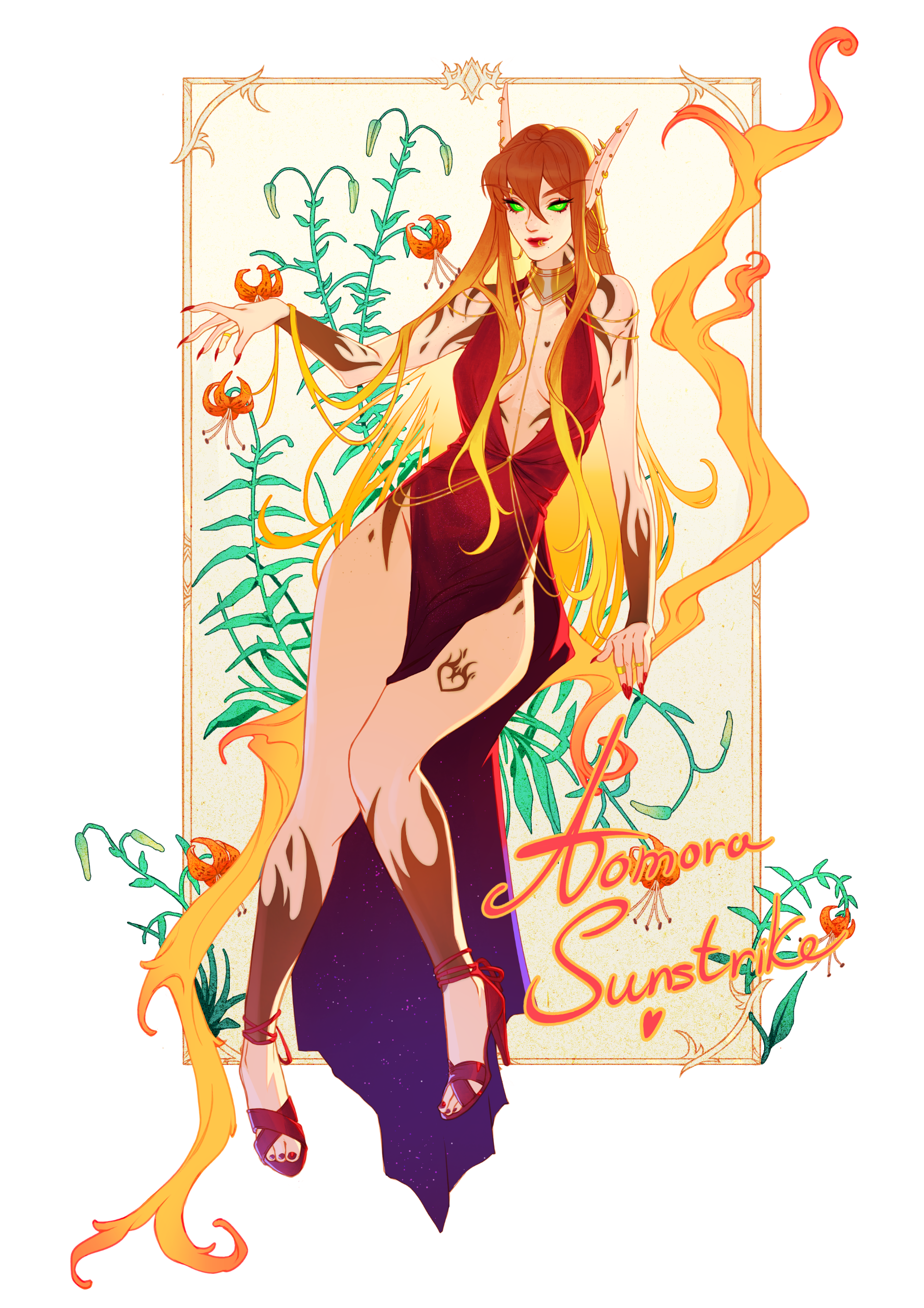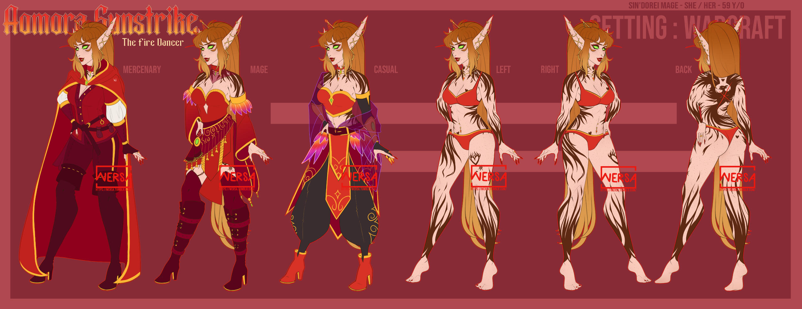 Current reference sheet features Aomora's WoW AU. ( Other AUs are in the works! )❝ Aomora has been known to socialize with just about anyone, from the outcasts and sailors of Booty Bay, to the proud people of Quel'Thalas — her favorite passtime is being around other people.A redheaded fire mage with a tumultuous emotional life, she hails from a life of nobility among the elves of Quel'Thalas, though due to personal issues, she has spent the majority of her life in Southern Stranglethorn, making a living in Booty Bay as a number of things. You may have seen her over the years running with different crews — though she has now returned to life within the comfort of her home in Silvermoon City. ❠