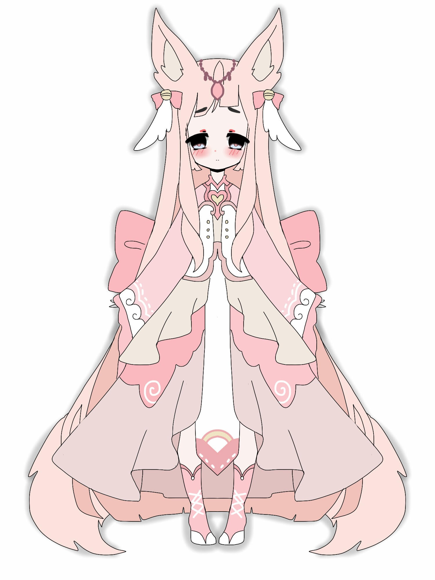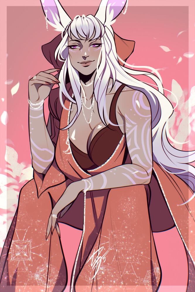 Aesthetics : Pastel colors, especially pink and white, cherry blossoms, soft pinkish things, bubblegum, dancing.Design notes : Blossom has a tall and slightly curvaceous build. Her hair is thick and fluffy, white with pastel pink streaks. Has a bunny tail and paws!Don't hesitate to ask me if you are unsure about something!