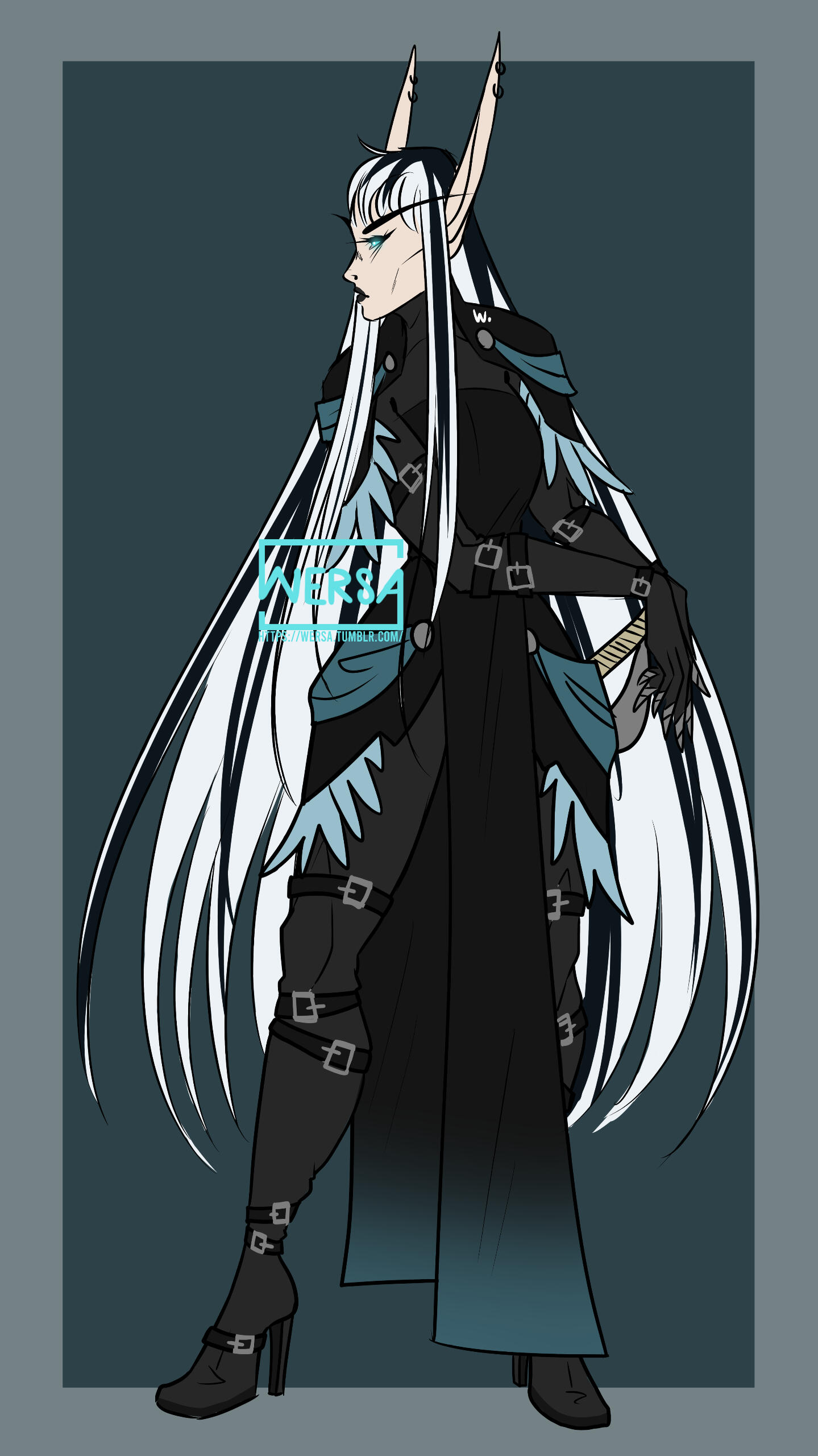 Aesthetics : Dark colors, frost magic, enchanted rapiers, magic in general, goth themes, the wilderness / survival, monster hunting, leather.Design notes : Ciranel has a tall and slender build with some curves. They are the goth person your mother warned you about. Hair is primarily white with black streaks here and there.Don't hesitate to ask me if you are unsure about something!Important details to remember when you are drawing Ciranel :
