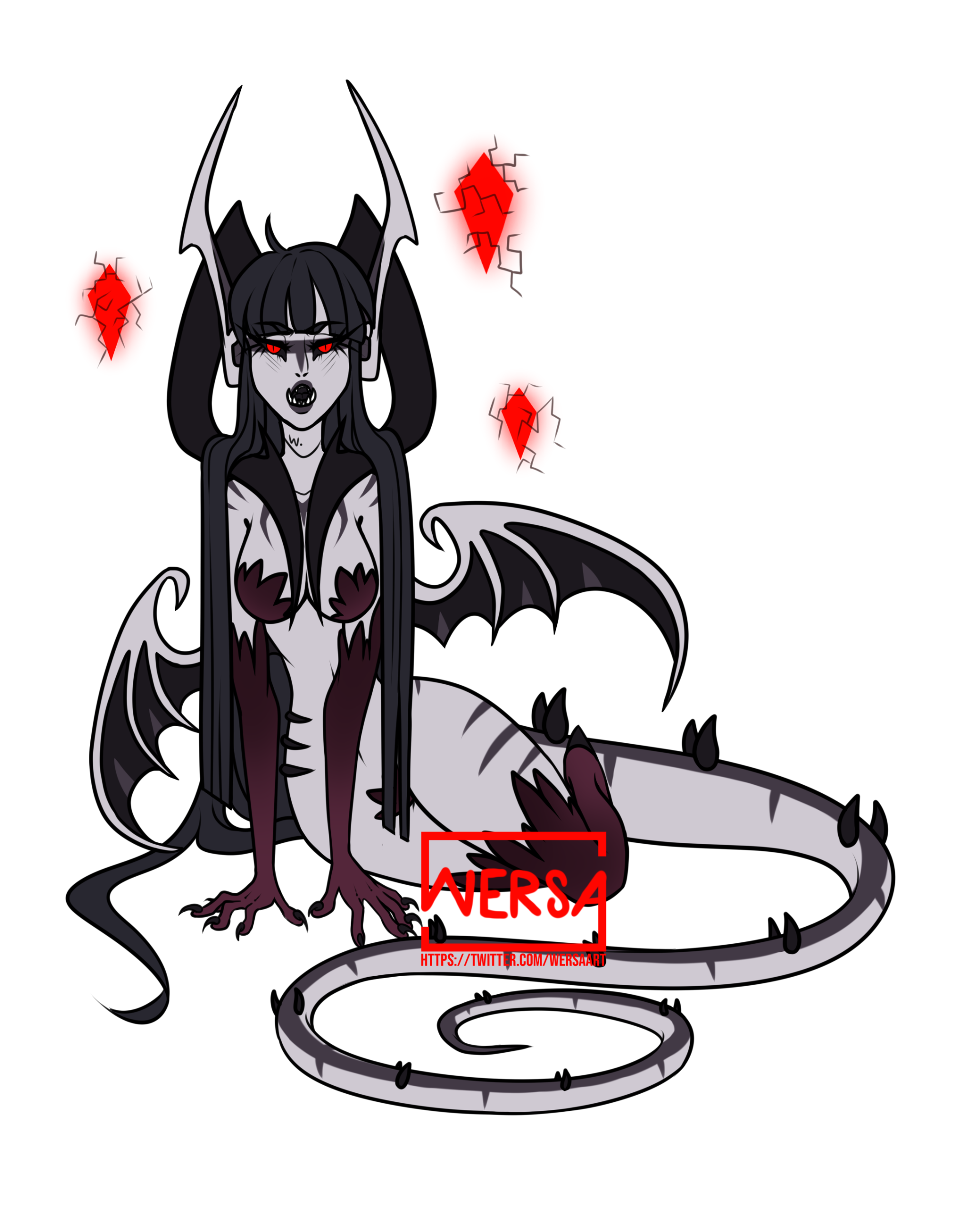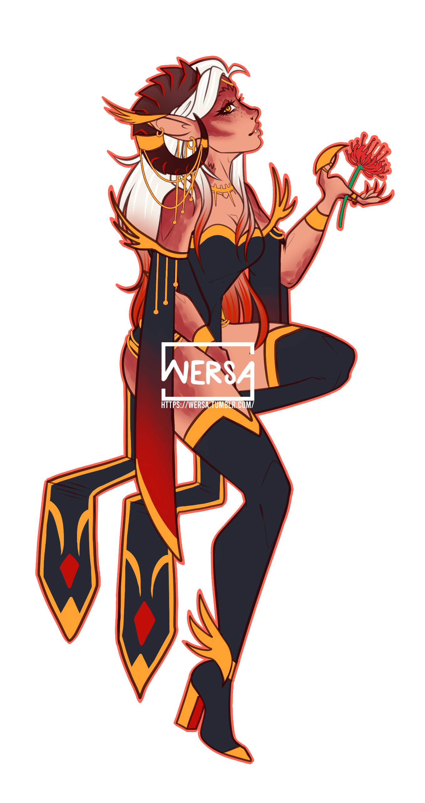 Aesthetics : Hellfire, Gothic themes, Death, Demons and succubi themes, Souls and their worth, Being the outcast, Bloodied red roses.Design notes : Xenasha has a petite, curvaceous body type. Color palette may change over time, as may her demonic features - she is a changeling, so if you get something a little wrong, it's not the end of the world!Don't hesitate to ask me if you are unsure about something!Important details to remember when you are drawing Xenasha :