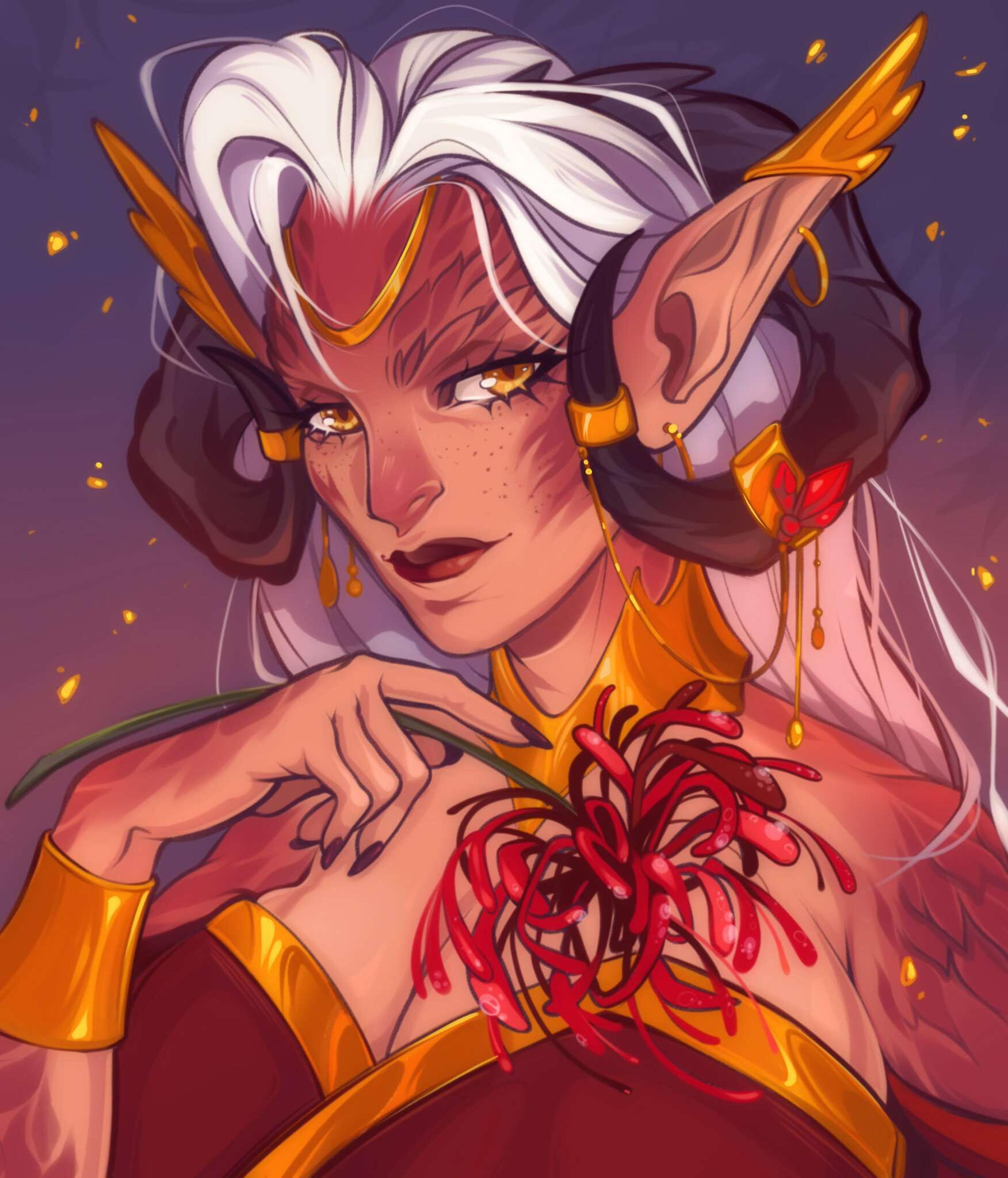 Eduriel is cis and uses she / her pronouns. She is also bi and polyamorous.Has AUs in D&D, WoW and FFXIV as of right now. Please note that her design varies per AU.