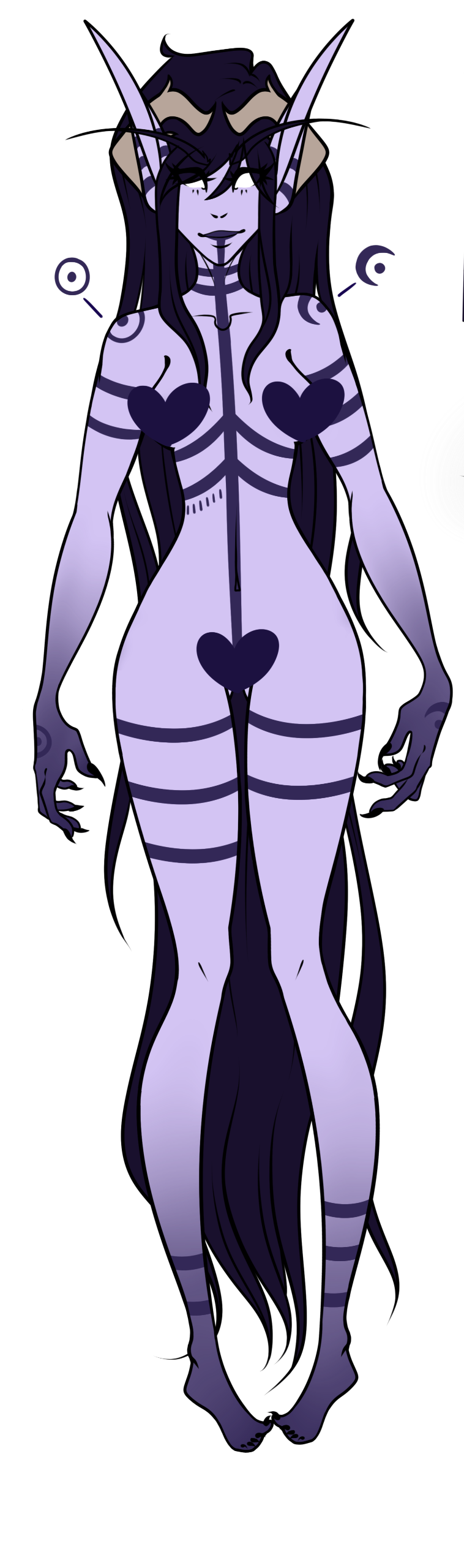 Aesthetics : The darker side of nature, druidic themes, bones, the moon, autumn leaves, offerings to your God, painted skin, ravens.Design notes : Lavender has an incredibly slender build. She also suffers from my addiction to making OCs with long asf hair. Body markings may vary!Don't hesitate to ask me if you are unsure about something!Important details to remember when you are drawing Lavender :